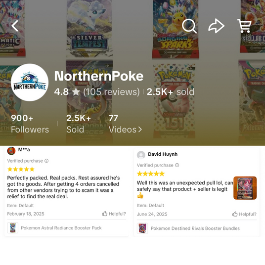 Trusted by collectors nationwide, NorthernPoke has fulfilled over 2,500 items on TikTok, backed by 100+ five-star reviews. We take pride in our commitment to quality, carefully packaging each item to ensure it reaches you in pristine condition.